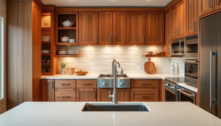 Imagine walking into a kitchen that feels warm and inviting, where the rich hues of oak cabinets wrap around you