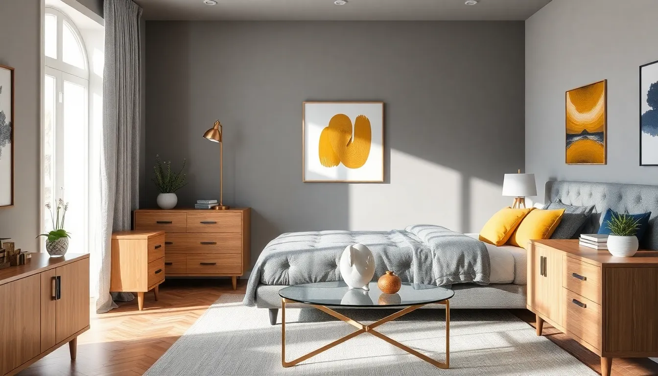 Artwork serves as a focal point in grey bedrooms, showcasing personal style. Choose large canvas prints or framed photographs with bold colors to pop against grey walls. Wall art featuring abstract designs injects creativity while remaining calming. Decorative accessories like sculptures or vases can enhance the room’s aesthetics without cluttering it. Introducing greenery through plants adds a refreshing touch that livens the space. Coordinating accessories in complementary colors maintains harmony and balance throughout the room.