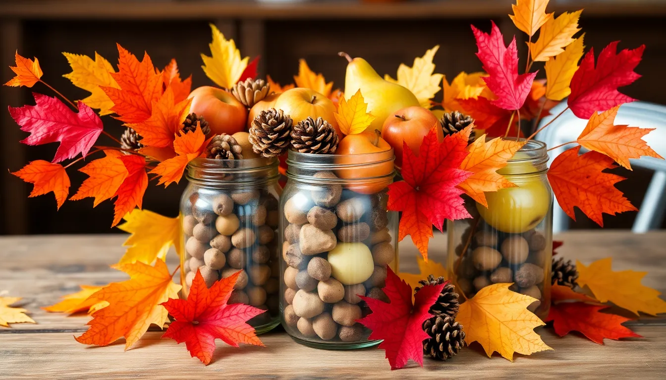 Using elements from nature creates simple yet stunning centerpieces. Fill glass jars or bowls with acorns, pinecones, and seasonal fruits like apples or pears. Arrange vibrant leaves in varying shades to add warmth and texture. Incorporating small branches or twigs creates height while maintaining a rustic feel. Gather ingredients in a unique tray or basket to bring everything together. With minimal effort, nature transforms into beautiful, earthy decor.