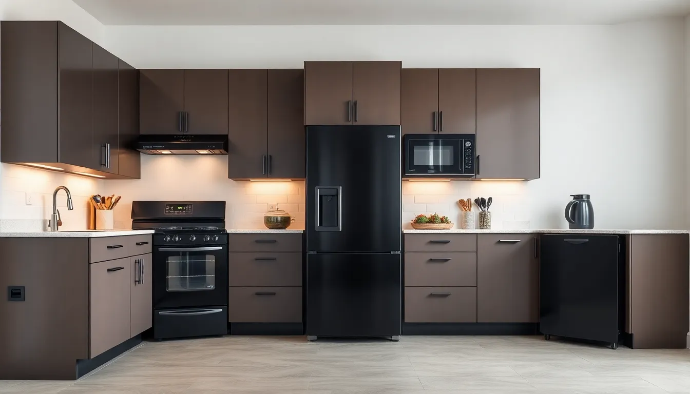 Modern kitchens often benefit from sleek black appliances that provide a bold visual contrast against lighter cabinetry. The sophisticated look complements numerous design styles, from contemporary to industrial. With a matte finish, these appliances add depth and elegance. They also create a streamlined appearance that appeals to many homeowners. Customization possibilities further enable seamless integration into diverse kitchen designs. Black appliances serve as a striking focal point, drawing attention without overwhelming the space.